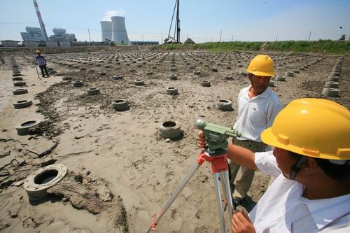 圖為第一標(biāo)段施工人員對8400顆基樁進(jìn)行標(biāo)高測量。