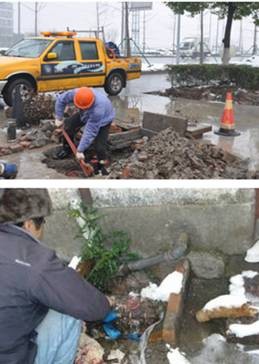 “稽山路和錢陶公路交界處DN100閥門冰裂引起3家企業(yè)停水;興越路、裕民路與金柯橋大道交叉口兩只DN300的閥門破損可能引起周圍企業(yè)及居民用戶停水4小時;華舍、齊賢靈芝片因管網(wǎng)尚未改造老化嚴重,多處水表、水管凍裂……”,一一個“三來”搶修的信息,個個都敲在搶修人員的心上,為確保用戶能盡快恢復用水,公司搶修人員從元旦開始就沒有休息過。車輛不夠,就動用三輪車、私家車;人手不夠,就加班加點。搶修人員們抱著“不處理完手中任務,絕不休息”的念頭冒著紛飛的大雪,刺骨的寒風,一直奮戰(zhàn)到深夜,“早一秒修好,就早一秒通水”,供水搶修人員以實際行動踐行服務承諾,保障了廣大用戶的安全用水。