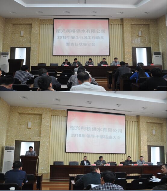 會上,公司領(lǐng)導(dǎo)班子成員及供水分公司經(jīng)理分別諾廉;安全生產(chǎn)分管副總就2015年安全、行風(fēng)工作進(jìn)行了動員部署;公司總經(jīng)理李葉茂與14個部門(單位)簽訂了2015年度安全、行風(fēng)生產(chǎn)責(zé)任狀。