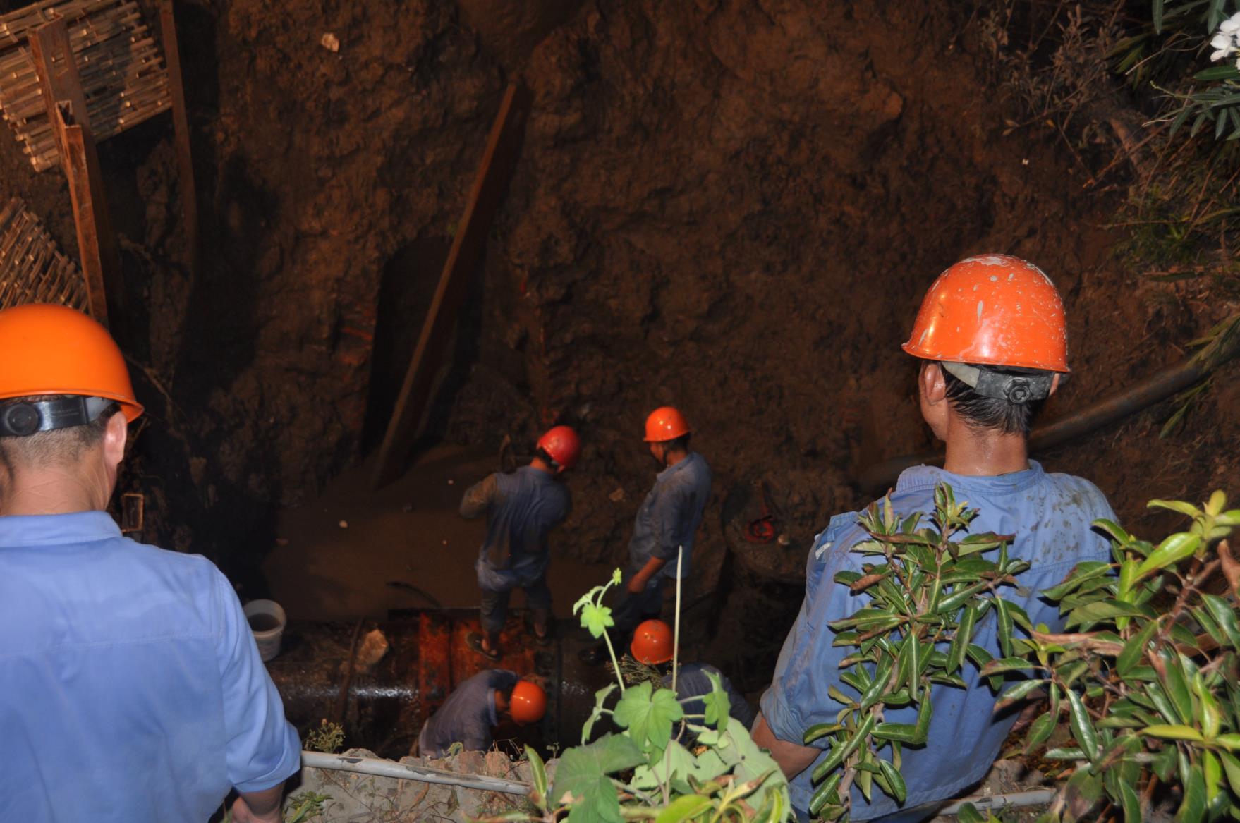 當(dāng)晚,雙臺(tái)風(fēng)余威尚未盡興,尤其是后半夜受其余威影響陡然而至的暴雨,扎扎實(shí)實(shí)地落在搶修人員的臉上和身上,早已分不清是雨水還是汗水。暴雨過后的夜晚,頻頻騷擾的蚊蟲,更是將搶修人員裸露在外的脖子和手臂上留下密密麻麻的痕跡。被應(yīng)急燈照得燈火通明的搶修現(xiàn)場,大伙兒雖然身軀疲憊,卻始終斗志高昂,雖然各個(gè)渾身濕透沾滿污泥,卻不曾有過半句怨言。為盡快恢復(fù)正常供水,這些搶修“衛(wèi)士”與時(shí)間賽跑,分秒必爭,堅(jiān)持、再堅(jiān)持……